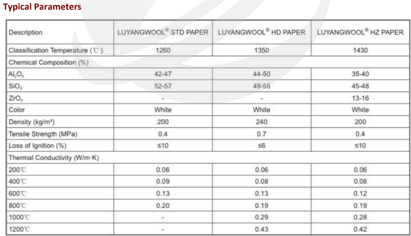 Luyangwool® paper is manufactured by blending Luyangwool® bulk, binders, and additives. The specialized paper-making process is used to form uniform and flexible paper.Luyangwool® paper is easy to be handled and cut.Luyangwool® paper can be used in a wide range of applications as thermal insulation.It is especially suited to used in gaskets and as a parting medium.